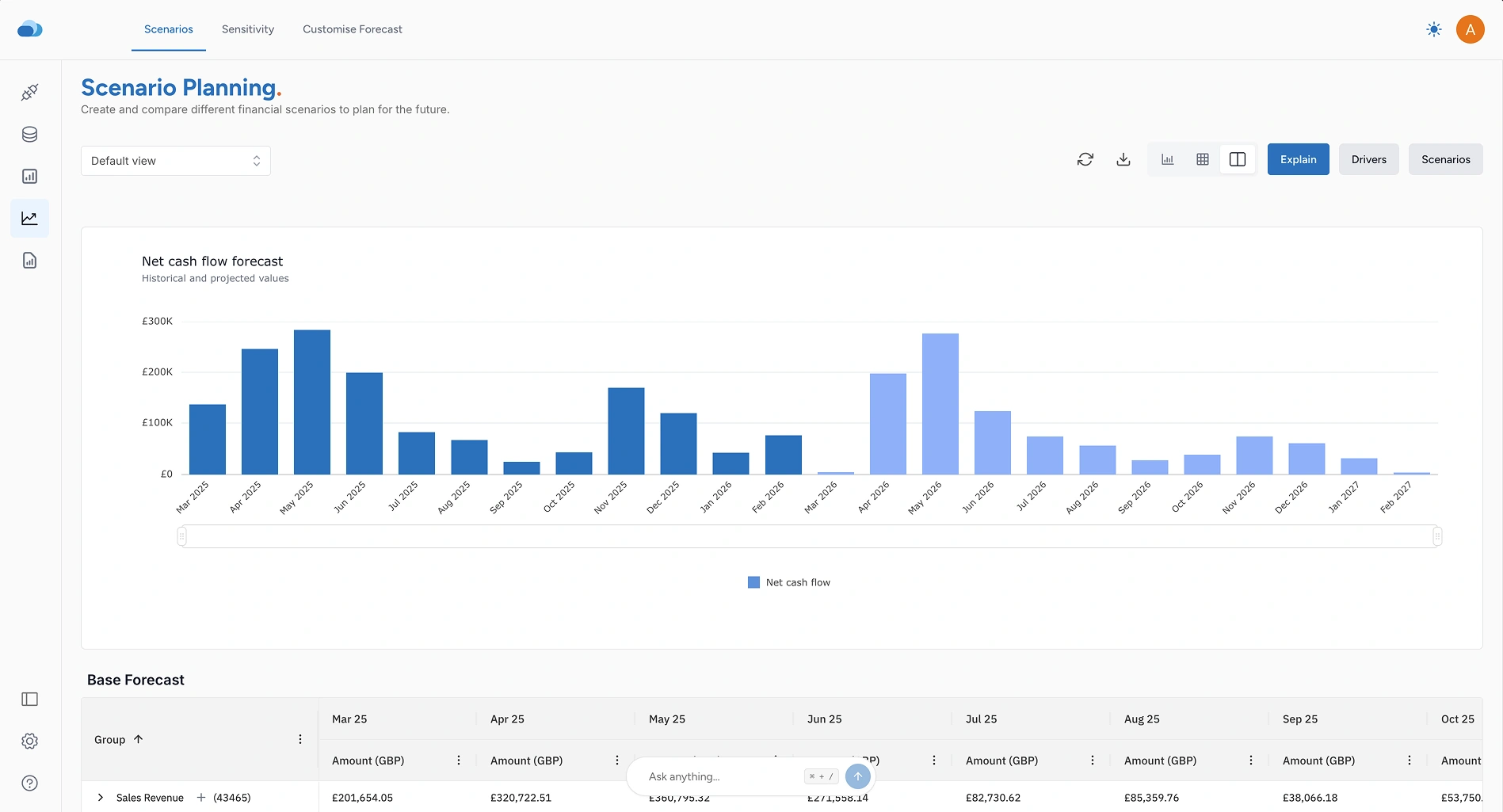 Begin with the percentile controls that set how confident or conservative the cash projection should be.